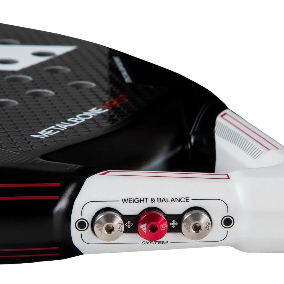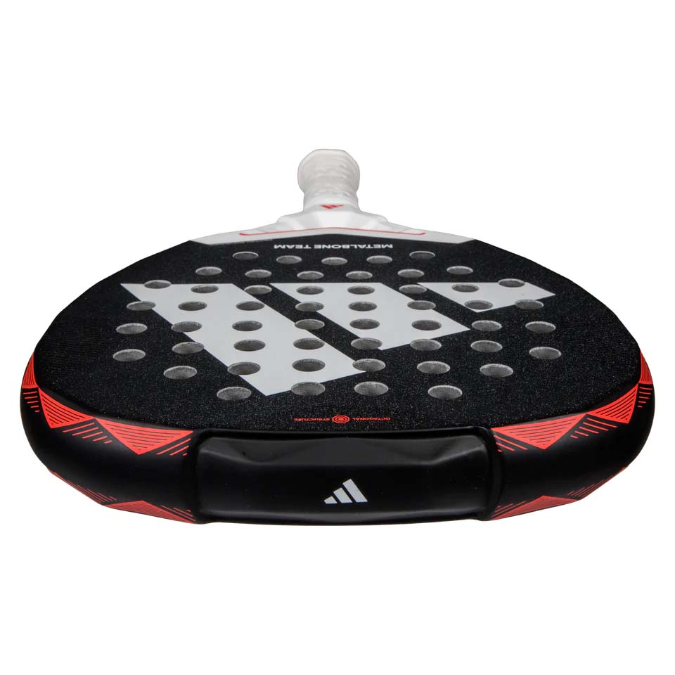 Adidas Metalbone Team 3.4 ir ideāla inovāciju, veiktspējas un dizaina kombinācija. Tās dimanta formas konstrukcija koncentrē svaru raketes augšdaļā, palielinot sitiena spēku uzbrukuma situācijās. Ar svaru 360-375 grami, Metalbone Team 3.4 apvieno augstākā līmeņa tehnoloģijas, kas optimizē gan jaudu, gan kontroli – pielāgojoties pat visprasīgāko un intensīvāko spēļu vajadzībām. Izturīgs un moderns melnais dizains ar raksturīgām sarkanām detaļām.